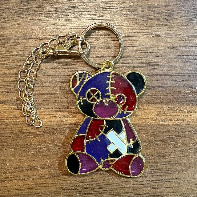【ツギハギシリーズ】クマのアルル(レッドxパープル)バッグチャーム