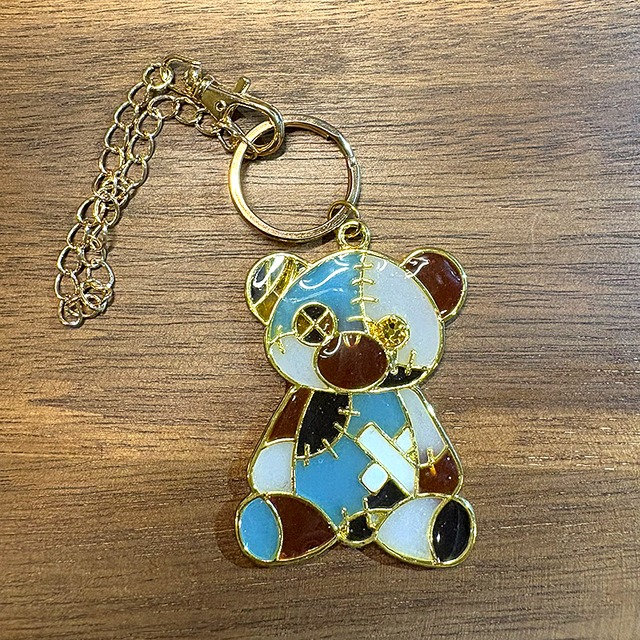 【ツギハギシリーズ】クマのウル(ブルーxブラウン)バッグチャーム