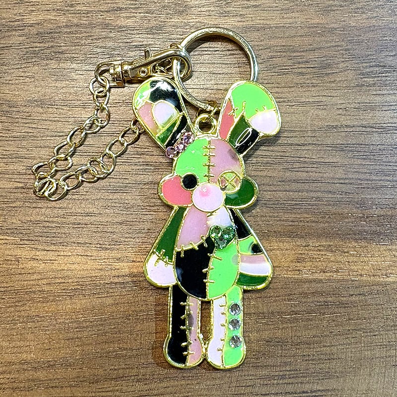 商品名:【ツギハギシリーズ】ウサギのクレール(グリーンxピンク)バッグチャーム