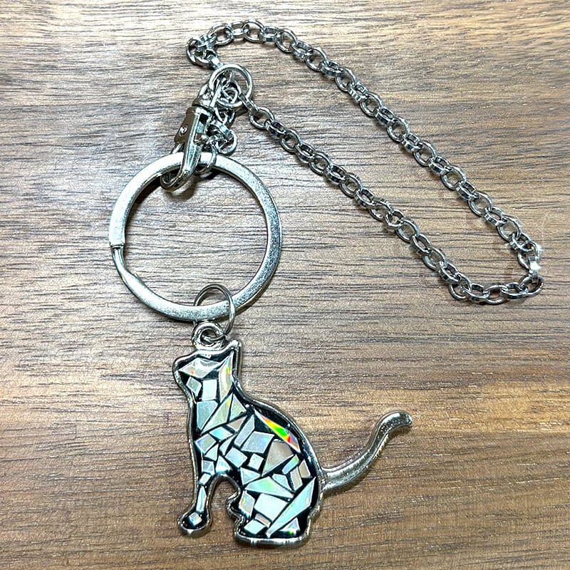 【ディスクホロチャーム】(猫)シルバーロングバッグチャーム