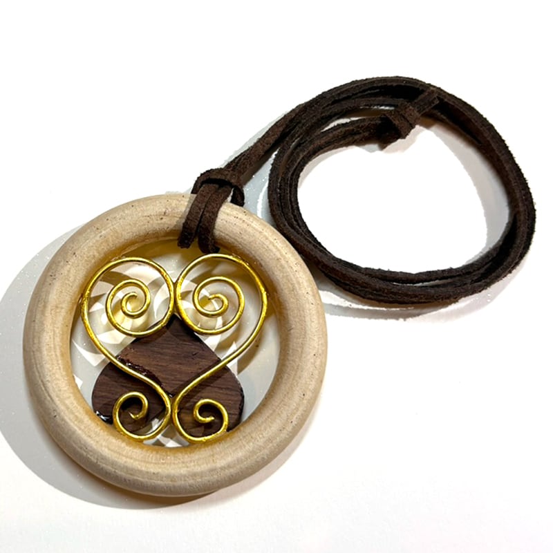 【ウッドぐるぐるハート】ウッドペンダント(ローズウッド)