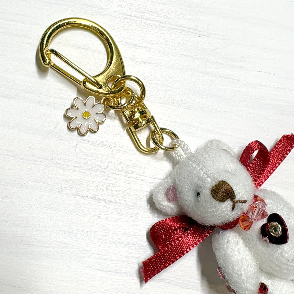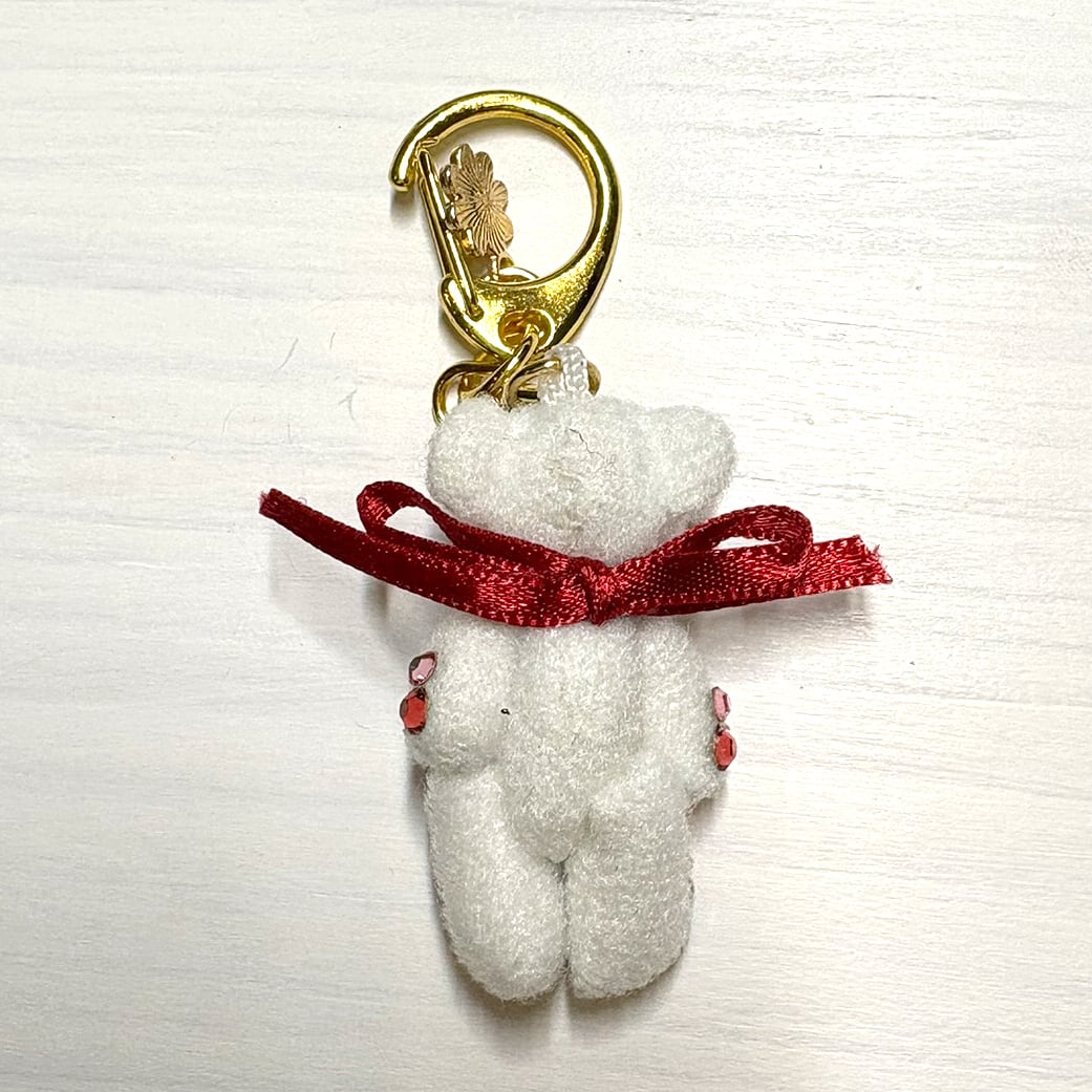 可愛いミニマスコットにスワロフスキーをふんだんに使っておめかししたキーホルダーです。