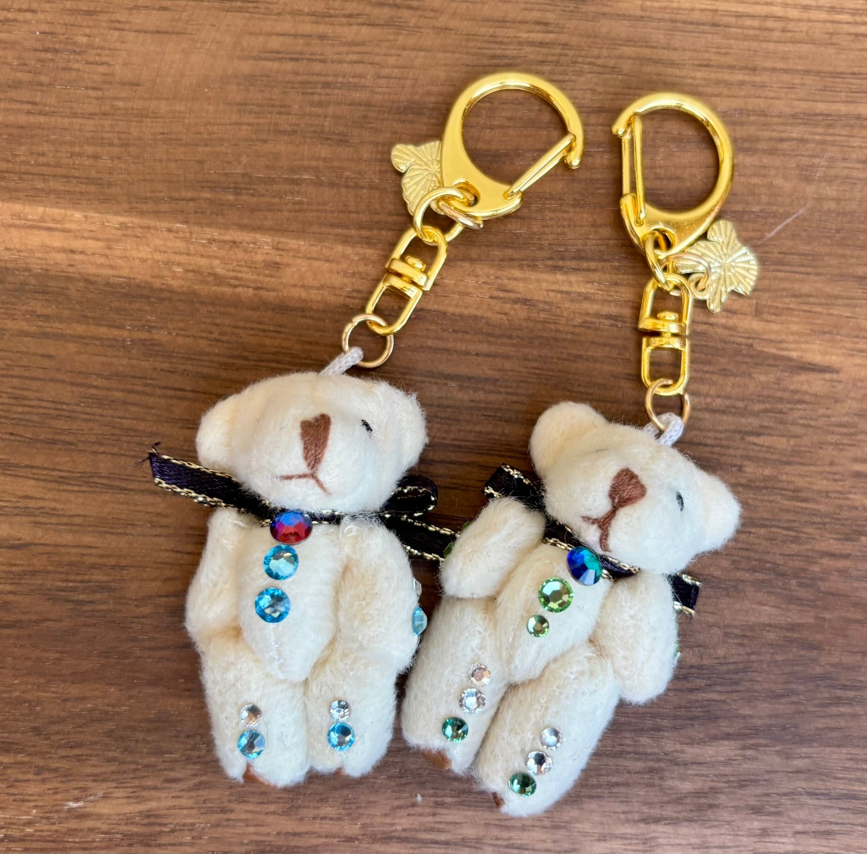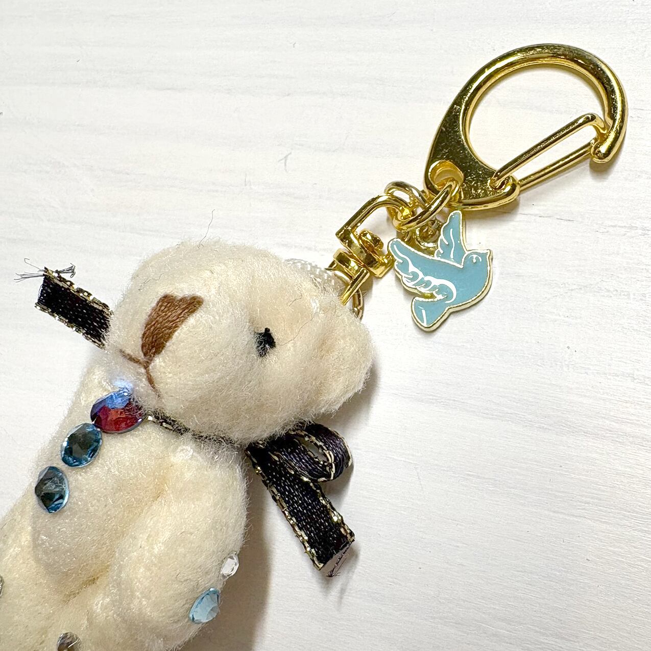 可愛いミニマスコットにスワロフスキーをふんだんに使っておめかししたキーホルダーです。