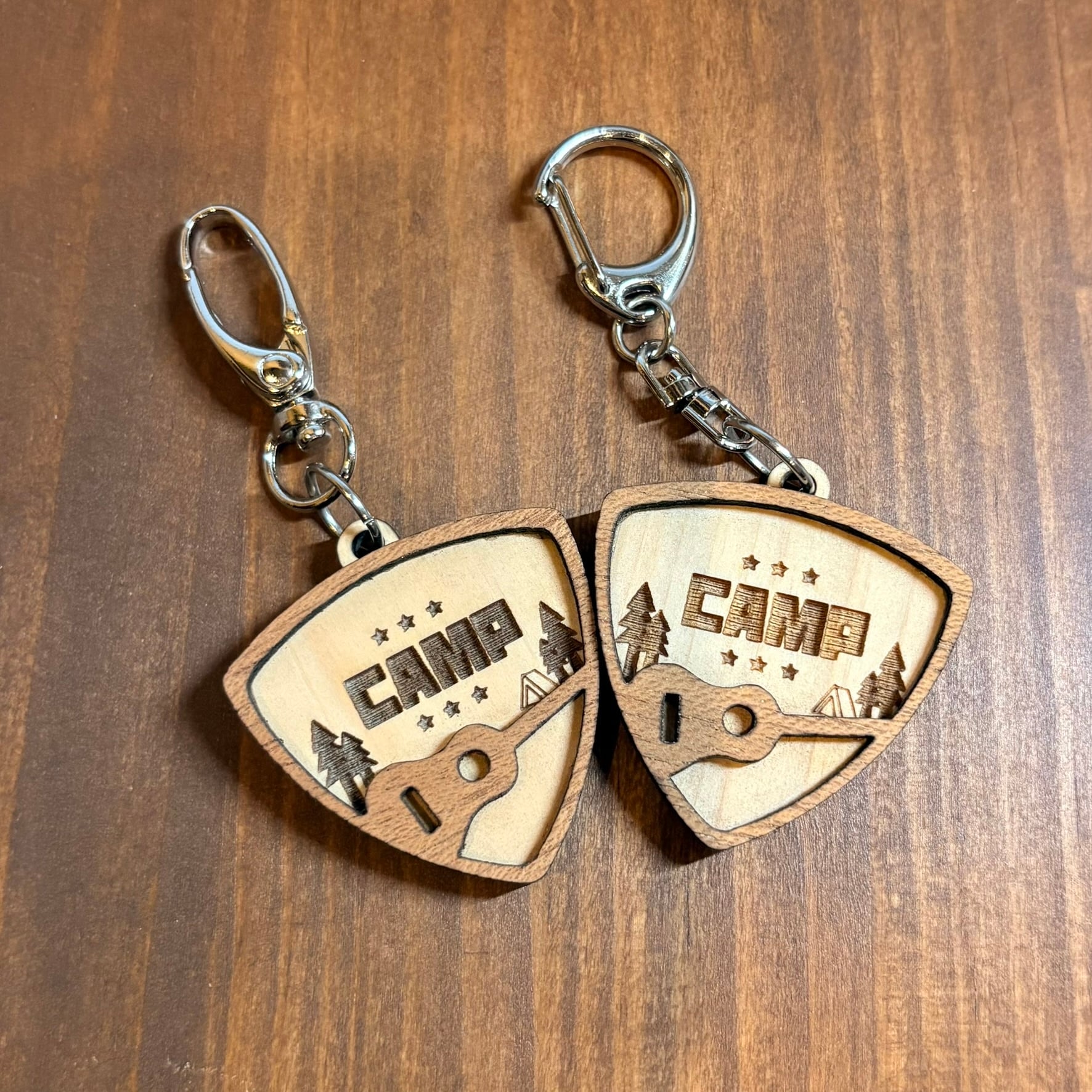 【シンガーソングライターあつ】【CAMP】ギターピック型キーチェーン(マホガニー)