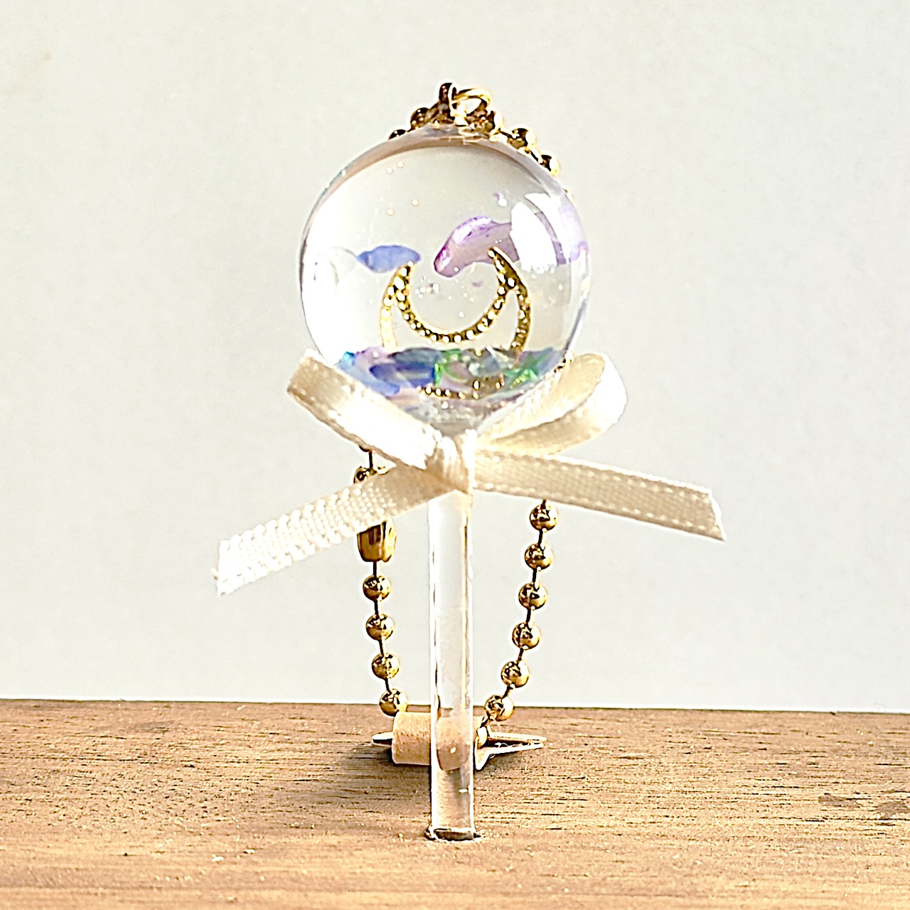 バルーンをモチーフにした球体にかわいいパーツを閉じ込めました。