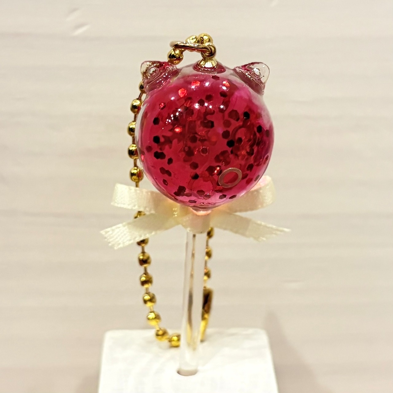 こちらはレジンで作った白猫と雪の結晶や赤いキラキラパーツを閉じ込めています。
